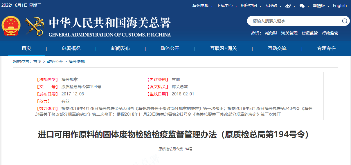查看詳情? 為加強(qiáng)進(jìn)口可用作原料的固體廢物檢驗(yàn)檢疫監(jiān)督管理,保護(hù)環(huán)境,根據(jù)《中華人民共和國進(jìn)出口商品檢驗(yàn)法》及其實(shí)施條例、《中華人民共和國國境衛(wèi)生檢疫法》及其實(shí)施細(xì)則、《中華人民共和國進(jìn)出境動植物檢疫法》及其實(shí)
